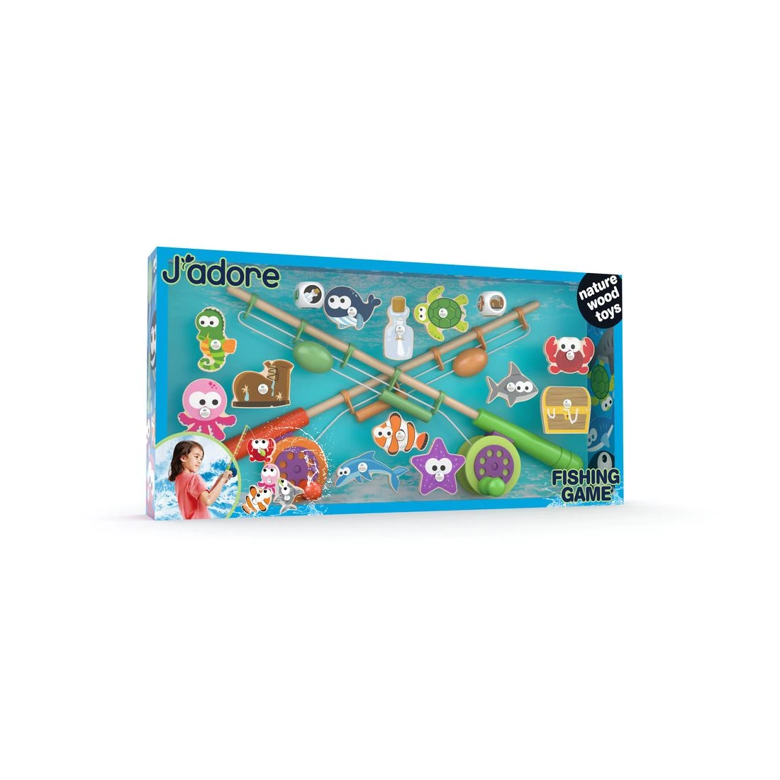 Take turns with a set of wooden rods fishing out 10 different magnetic pieces ranging from sea creatures to a boot based on the roll of a dice. Collect the most points assigned on the back of each piece to win the tournament. This nature wood toy is educational, great for coordination, and focusing in on concentration with every cast.