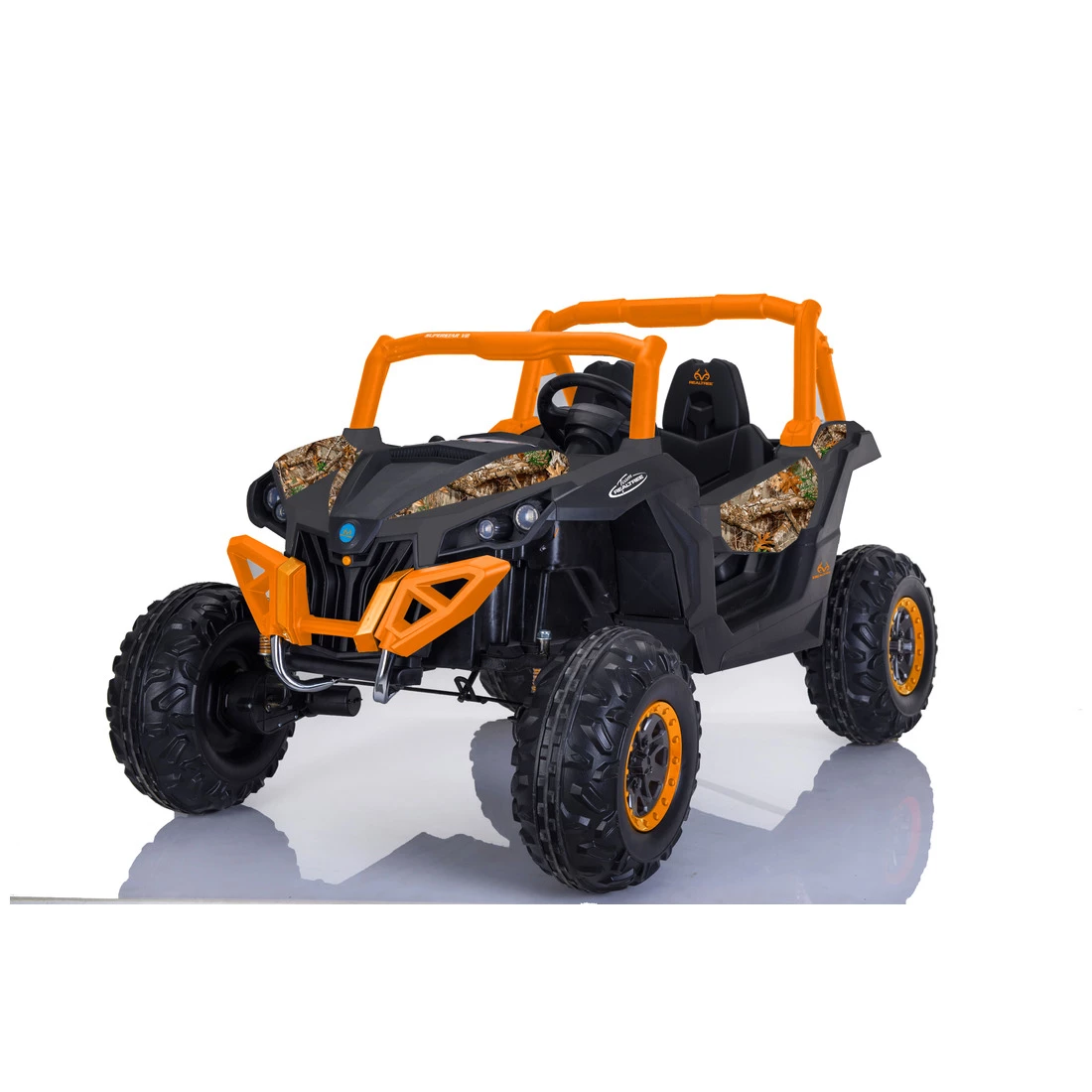 Our RealTree Lightning UTV comes with 4 motors and a rechargeable battery for reliability and is absolutely packed with features! It even has MP4/FM/Bluetooth capability with a touch screen to play your own music and video! The UTV has a high-end luxury feel with its officially licensed RealTree graphics, leather seat, real opening door, steering wheel with music and horn, and a realistic engine start sound. Safety features include a seat belt and a remote control for parents’ convenience.