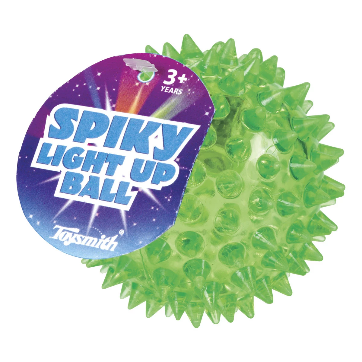 Tactile and visual fun, not to mention stress relief! Bounce it and see the lights flash, squish it and feel the rubbery, spiky texture. Great for sensory stimulation, stress relief, fidgeting, or just plain fun! Colors may vary – we’ll choose for you! Flashing Spiky Light Up Ball. 2.5 inch rubbery ball with soft spikes. Lights flash when bounced. Ages 3 years and up. Colors may vary