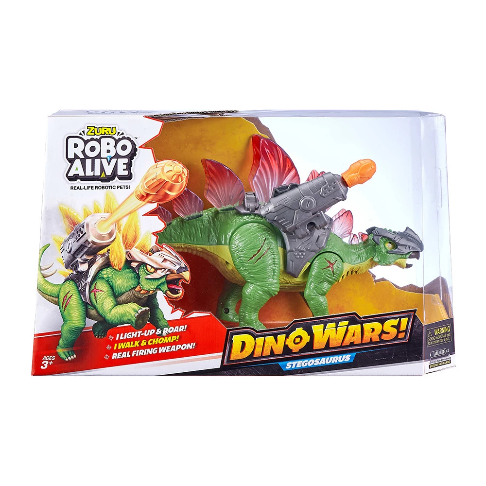 ZURU’s new Robo Alive Dino Wars Stegosaurus is built with advanced robotic technology and comes complete with real firing weapons! With lifelike roars and realistic dinosaur movement this is no ordinary pet. Strap on the defensive armor, load up the Dino Blaster and battle. With light up features this Stegosaurus can even run and hunt in the dark! It’s more than alive, It’s Robo Alive!